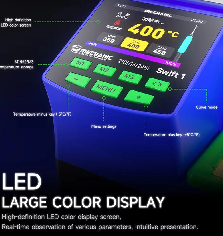 • MECHANIC Swift 1 Intelligent Digital Soldering Station 100-480C Rapid Heating Curve Mode LED Display Supports 210 245 115 Handles Soldering Repair Tool
