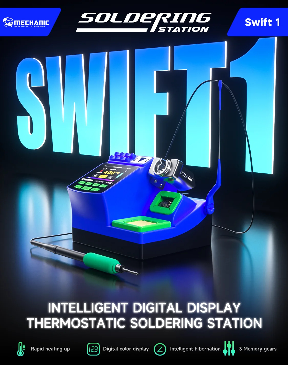 MECHANIC Swift 1 Intelligent Digital Soldering Station 100-480C Rapid Heating Curve Mode LED Display Supports 210 245 115 Handles Soldering Repair Tool