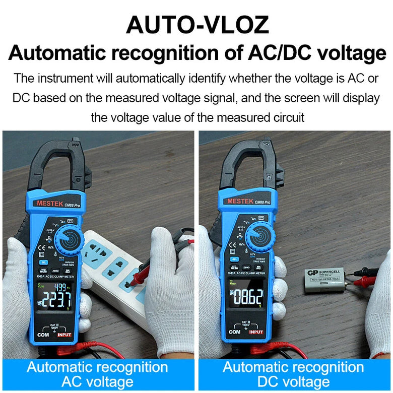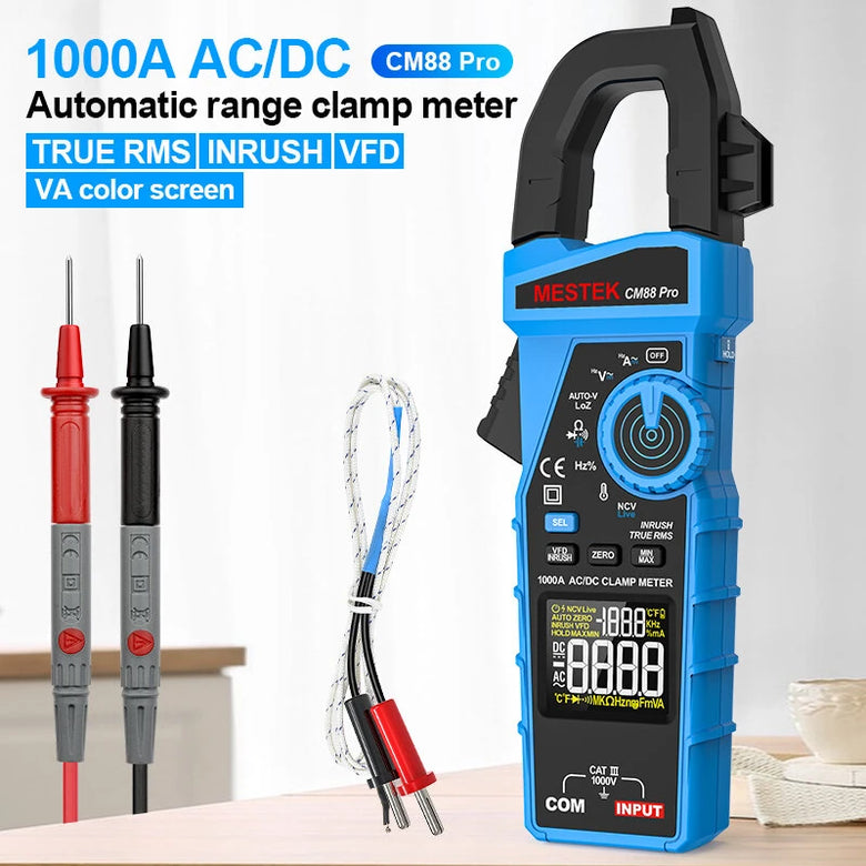 • MESTEK CM88 Pro Clamp Meter 6000 Counts True RMS 1000A AC/DC Current Meter 1000V DC Voltage Multimeter Electrical Tester