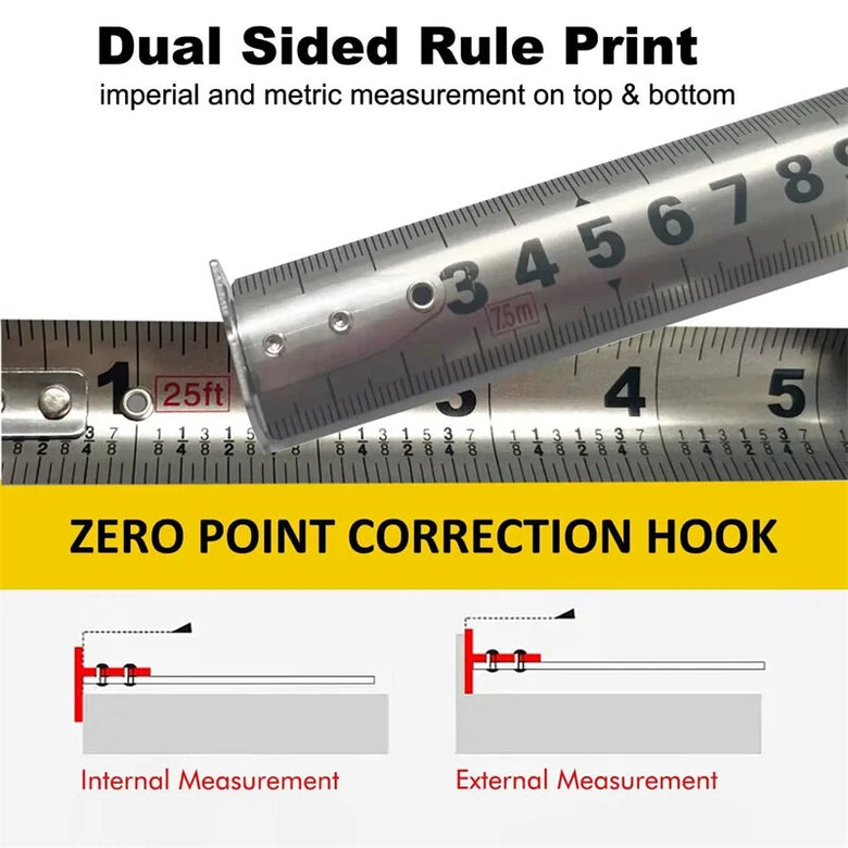 Premium Quality Components & Smooth Retraction: This tape measure features high-quality components including a stainless steel shaft, high-tension tape spring, and reliable buckles. These elements work together to ensure smooth retraction and extend the life of the tape measure, providing a dependable tool for critical measuring tasks.