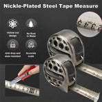 Nickel-Plated Outer Shell, Stainless Steel Tape Blade: Designed with a nickel-plated outer shell, this tape measure exudes a sleek and professional appearance. The stainless steel tape blade ensures superior strength and resistance to wear and tear, making it an ideal tool for long-term use in various environments.