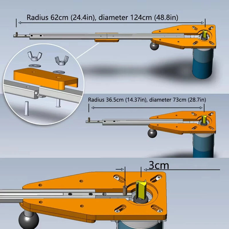 1. Wide Diameter Range: The jig allows for precise milling of circles from 3 cm to 124 cm, making it versatile for various woodworking projects.