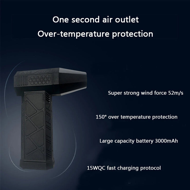 Product name: Violent fanProduct size: 130*45mmProduct weight: 305gMotor: Brushless motorSpeed: 130000/minBattery capacity: 3000mAhCharging method: TYPE-CShell material: ABS