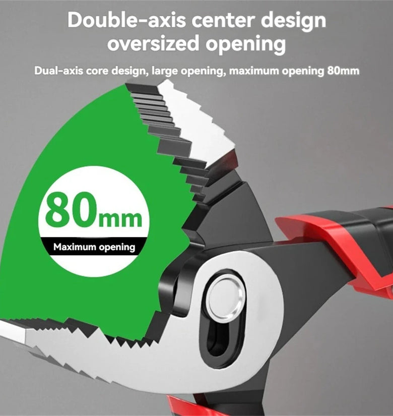 [Wide Jaw Opening] The pliers provide a maximum opening of 80mm, accommodating various tasks efficiently.