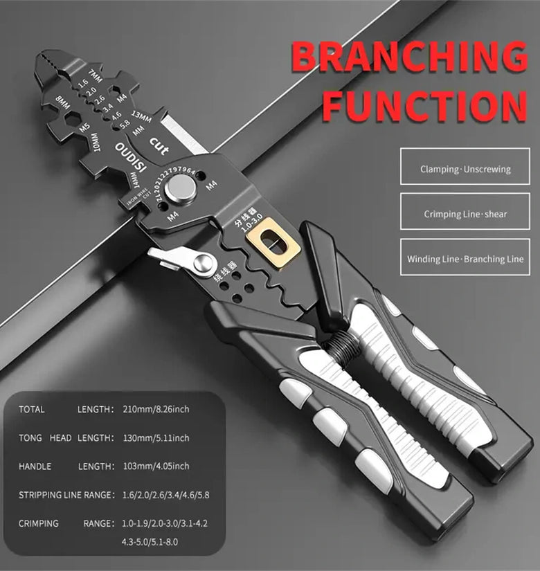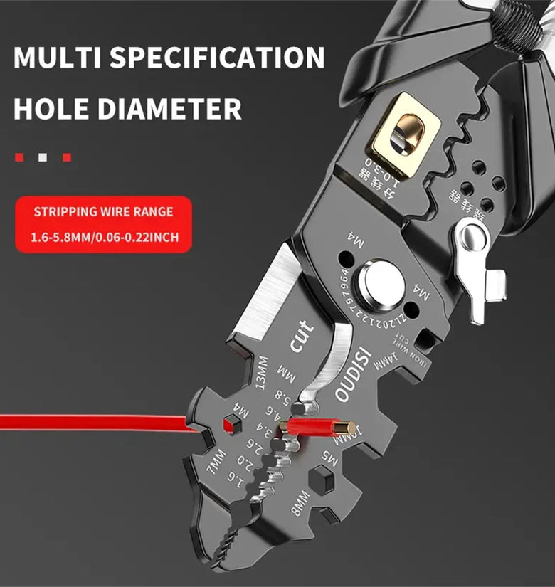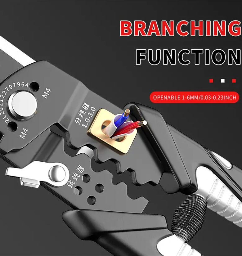 Multifunctional Wire Strippers: These wire stripping pliers are designed for electricians and offer versatile functionality.Crimping and Stripping: The pliers are capable of both crimping and stripping wires, making them ideal for various electrical tasks.High-Quality Material: Made of chrome vanadium steel, ensuring strength and long-lasting performance.Universal Wire Cutting: The pliers are suitable for cutting different types and sizes of wires, providing convenience and efficiency.Comfortable Grip: The ergonomic design of the pliers ensures a comfortable grip, reducing hand fatigue during prolonged use.Essential Hardware Tool: These wire stripping pliers are a must-have tool for electricians and DIY enthusiasts alike. Specifications:Material: Chrome Vanadium SteelSize: 6 inchesColor: BlackWeight: 100gSuitable for: DIY enthusiastsPackage Included:1 x Multifunctional Wire Stripper