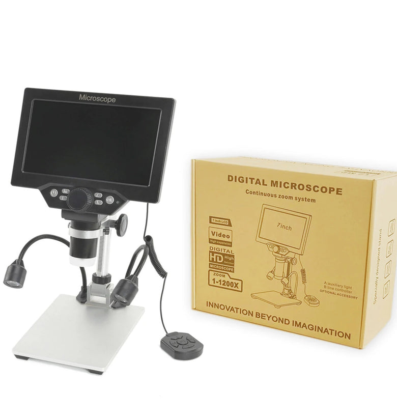 • Multilingual High-Definition B1200 Digital Microscope with 12MP Camera 1200X Magnification Adjustable Stand LED Lights Plug-in or Battery Powered for Precision Viewing and Recording
