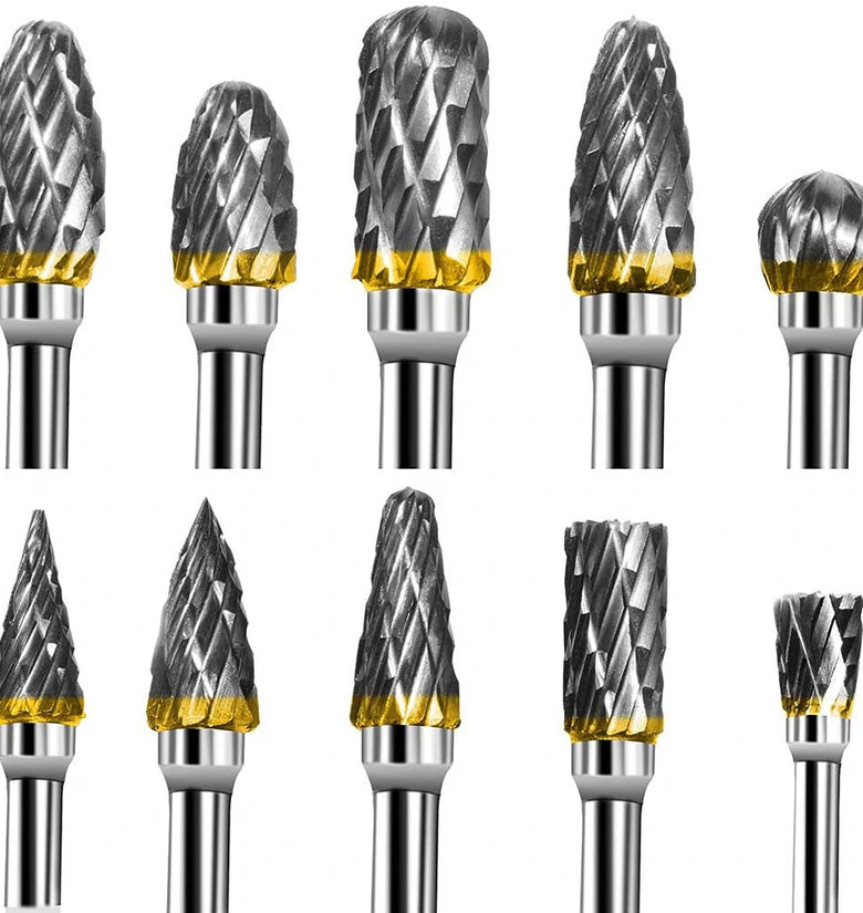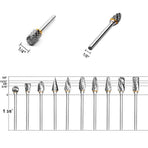 New 10 pcs 1/8' Shank Tungsten Carbide Milling Cutter Rotary Tool Burr Double Diamond Cutting Rotary Dremel Tools Electric Grinding