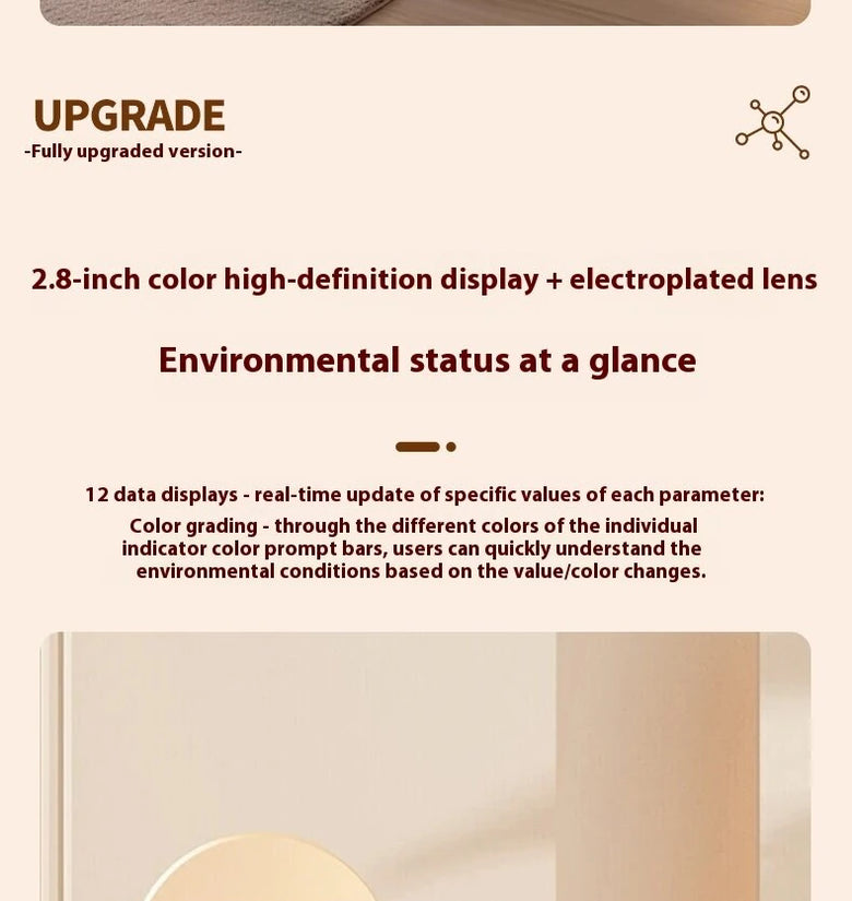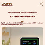 The clear, multi-colored LCD screen offers intuitive visualization of air quality metrics, ensuring data clarity, enhanced readability, and easy navigation of historical trend curves.