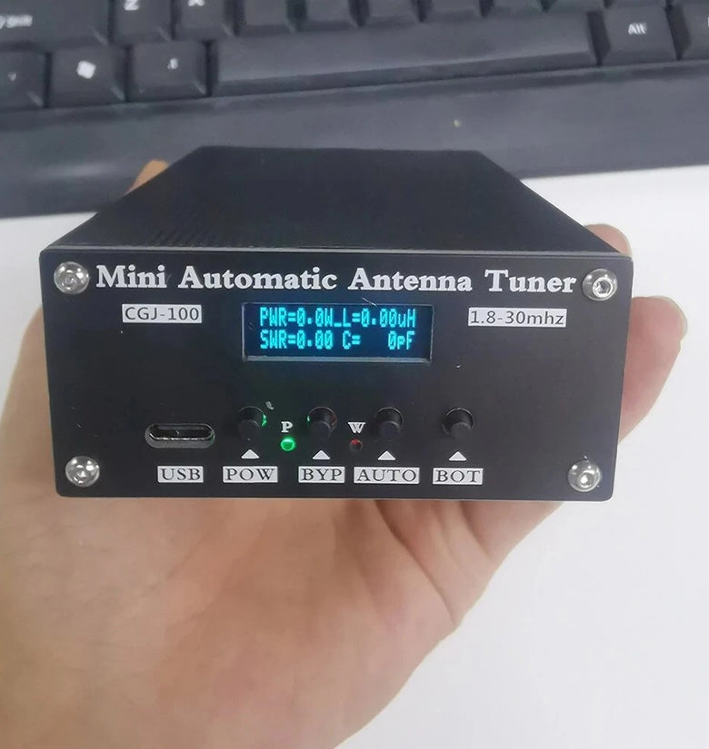 CGJ-100 1.8-30MHz Mini Automatic Antenna Tuner 0.91' OLED Display For 5-100W Shortwave Radio Stations