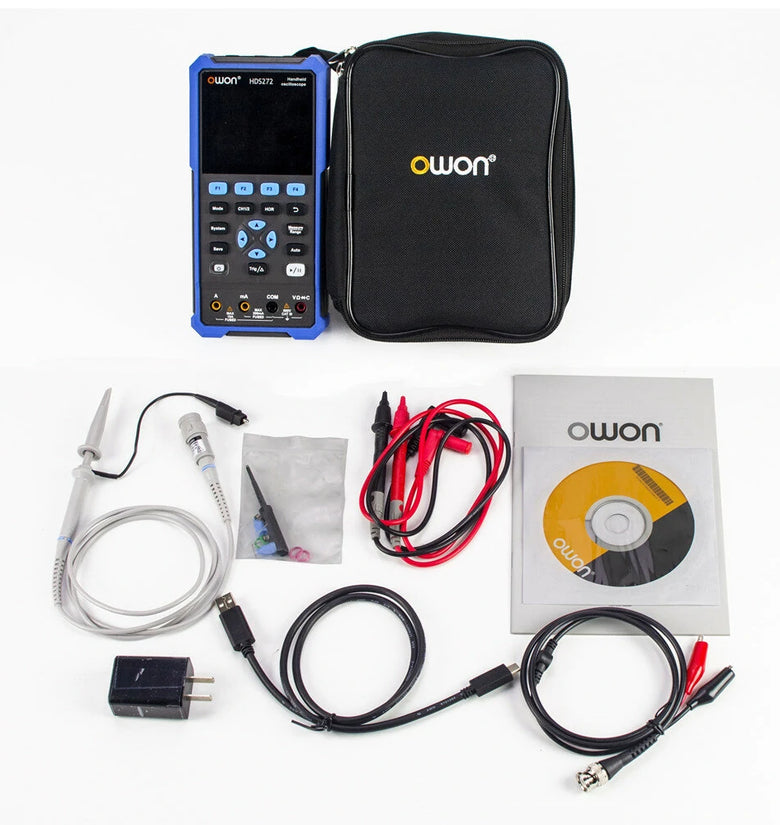 OWON HDS200 Series 2CH Handheld Oscilloscope 40/70/100MHz Bandwidth 20000 Counts Multiumeter OSC + DMM + Waveform Generator 3 in 1 Suitable for Automobile Maintenance and Power Test