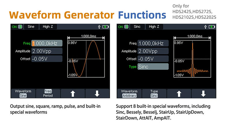 • OWON HDS2202/HDS2202S 2CH Handheld Oscilloscope 200MHz Bandwidth 20000 Counts Multimeter OSC + DMM + Waveform Generator 3 in 1 Suitable for Automobile Maintenance and Power Test HDS2202 HDS2202S