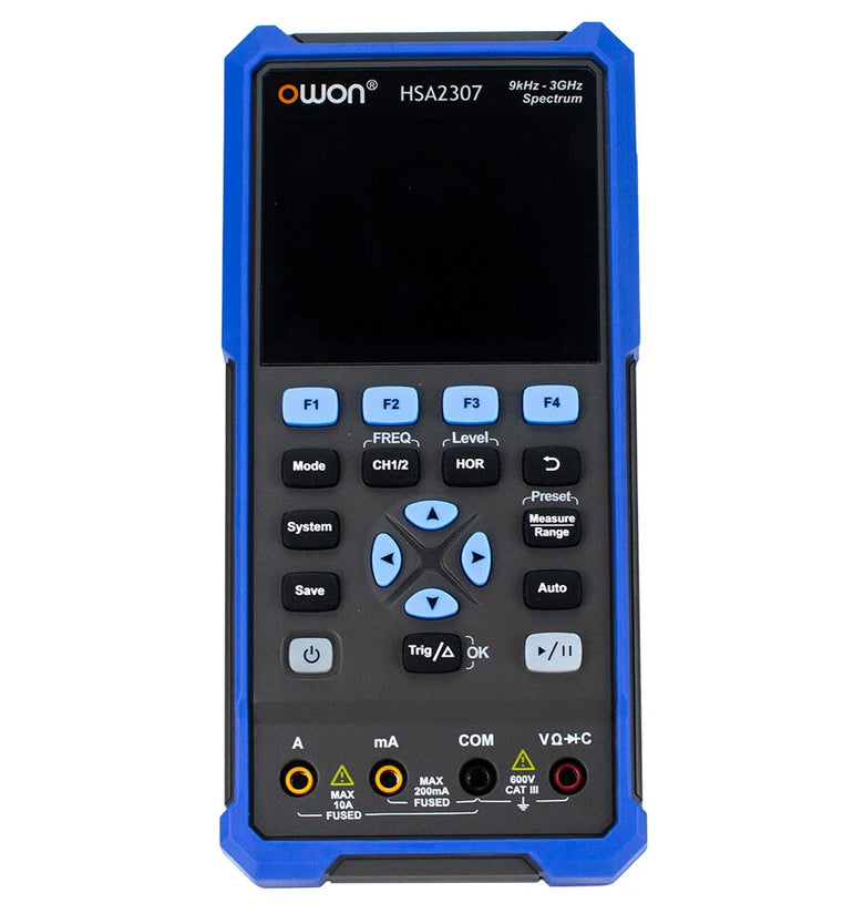 • OWON HSA2300 Series Handheld 3 in 1 Spectrum Analyzer Oscilloscope Multimeter 9kHz to 3GHz Frequency 200MHz Bandwidth USB Type C Interface 3.5 Inch LCD