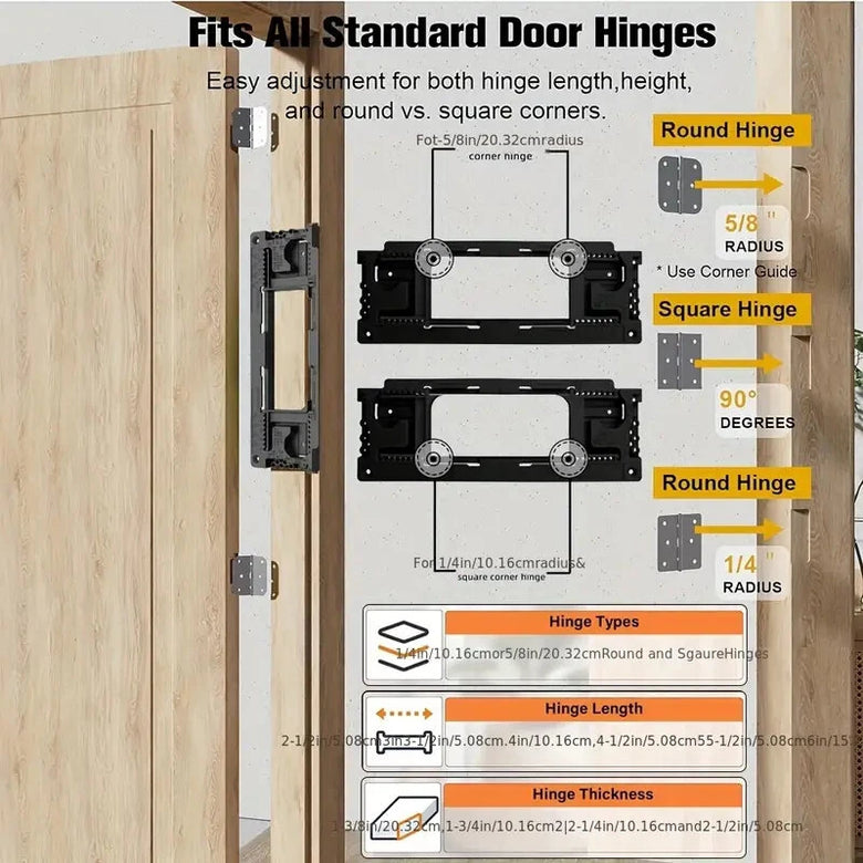 mso-bidi-font-family:'Times New Roman';font-size:10.5000pt;mso-font-kerning:1.0000pt;'>Adjustable Hinge Guide: Accommodates hinge lengths from 2-1/2 to 6 inches and thickness from 1-3/8 to 2-1/2 inches, ensuring compatibility with most door hinges.mso-bidi-font-family:'Times New Roman';font-size:10.5000pt;mso-font-kerning:1.0000pt;'>
