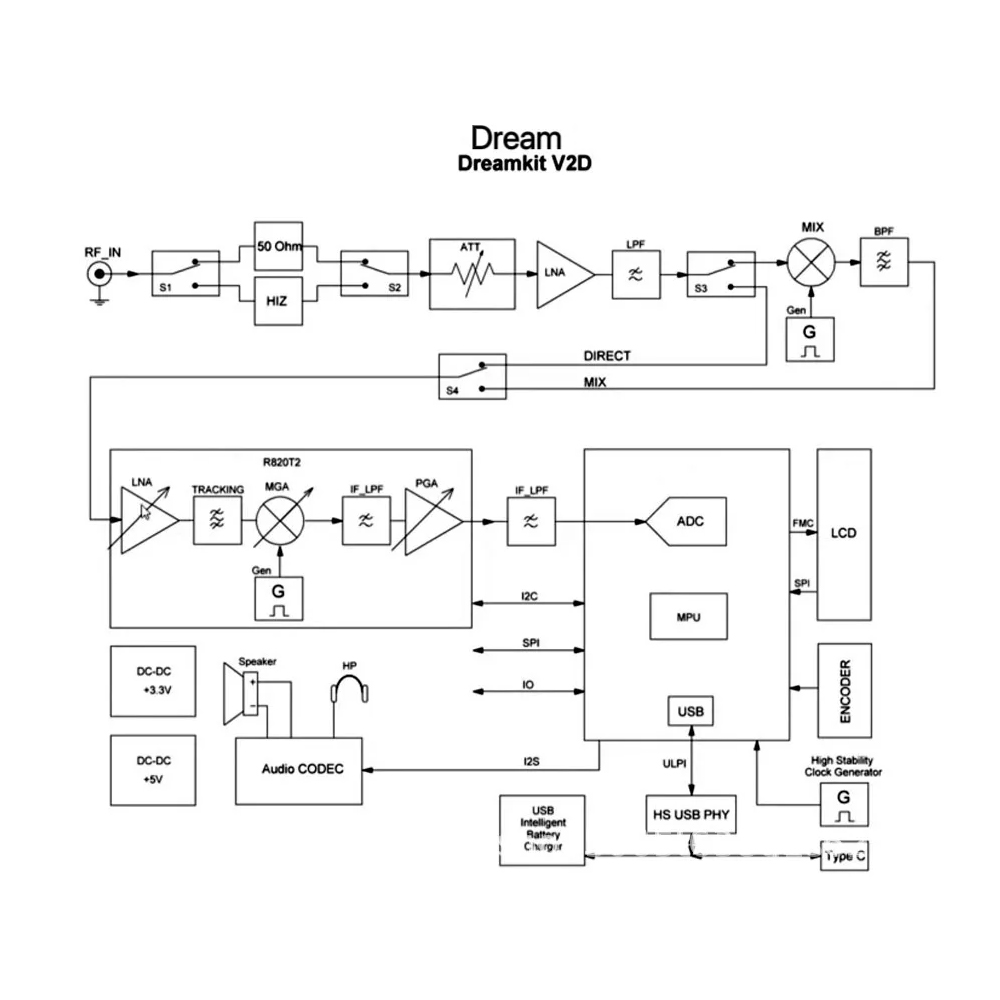• Portable All-wave Radio Receiver HAMGEEK SDR Dreamkit V2D Handheld Receiver with 100KHz-2800MHz Built-in Speaker Supports PC