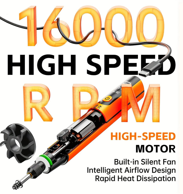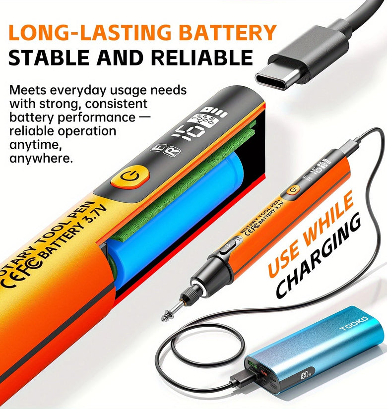 Powered via Type-C fast charging, this rotary tool pen supports up to 2 hours of continuous use on a single charge, making it ideal for extended projects.