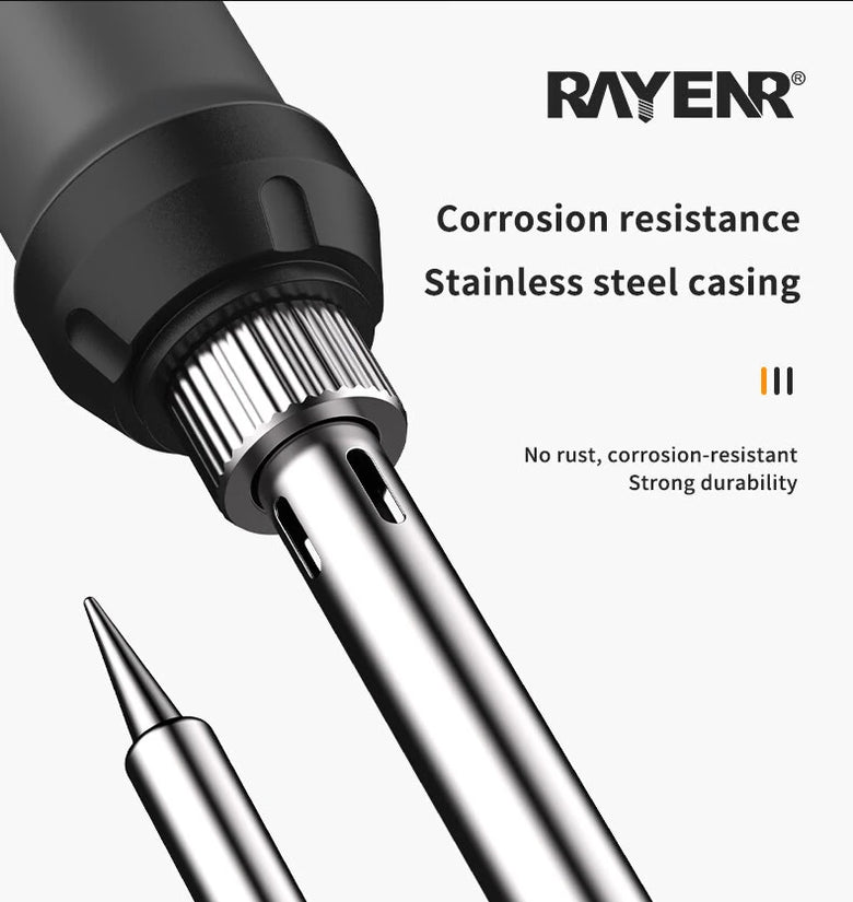 • RAYENR Digital Soldering Iron 60W Adjustable Temperature 150C-500C Ceramic Heating Element 18-Piece Kit with Stand Desoldering Pump Tweezers Cutter