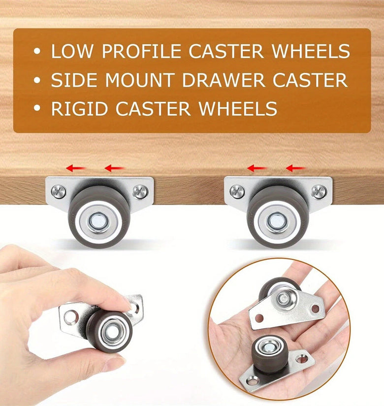 2. Low Profile Design: Specially designed to be attached to the side of your furniture pieces, raising them by only 8mm, which is perfect for tight and narrow spaces where standard casters would be too bulky.