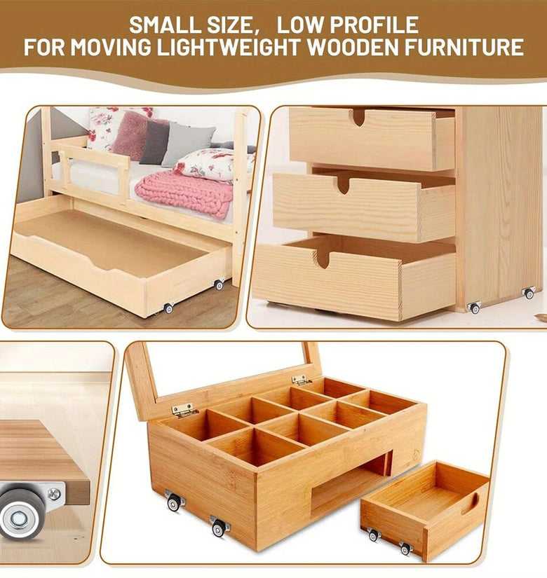1. Wide Range of Applications: Ideal for light-duty or small wooden furniture including under bed storage bins, sliding gates, trays, drawers, and DIY projects. These casters allow for smooth, one-directional movement making these ideal for various household and craft uses.