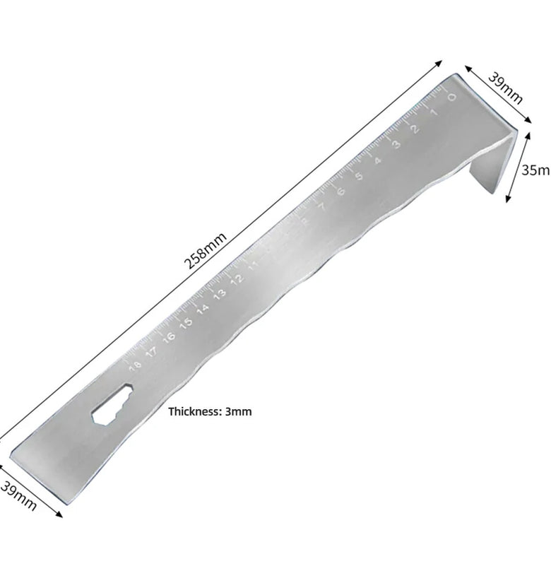 • Stainless Steel Prybar Scraper Ultra Sharp Scraper Removes Residue From Steel Aluminum with Wrench Function and Metric Scale Built-In Nail Puller