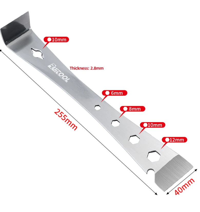 Stainless Steel Prybar Scraper Ultra Sharp Scraper Removes Residue From Steel Aluminum with Wrench Function and Metric Scale Built-In Nail Puller