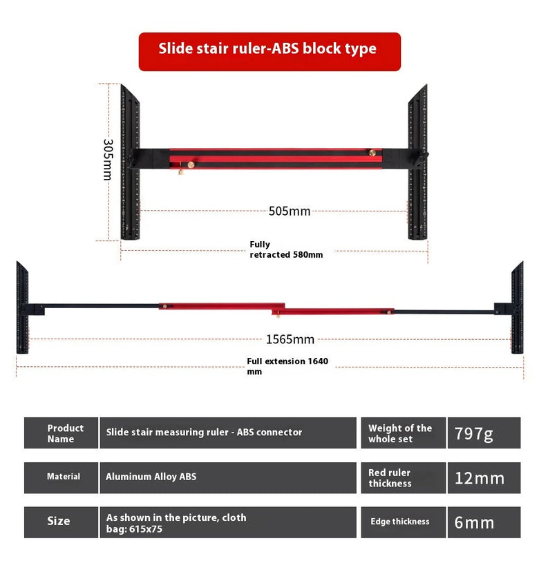 This Stair Tread Gauge is designed for precise measurements in stair installations, ensuring an accurate fit every time. Its extendable range covers most stair widths, making it a versatile addition to your tool kit.