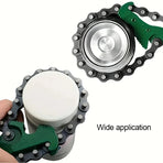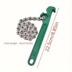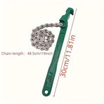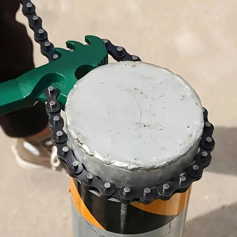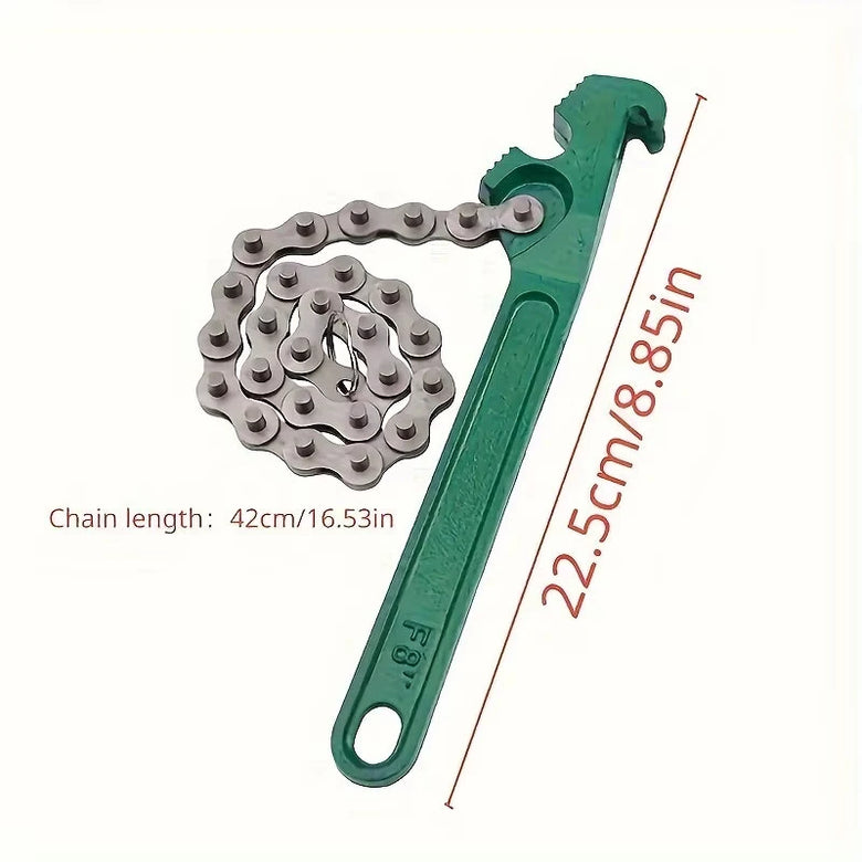 The chain mechanism ensures a snug fit around various pipe diameters and oil filter sizes, offering compatibility for diverse household or industrial tasks.
