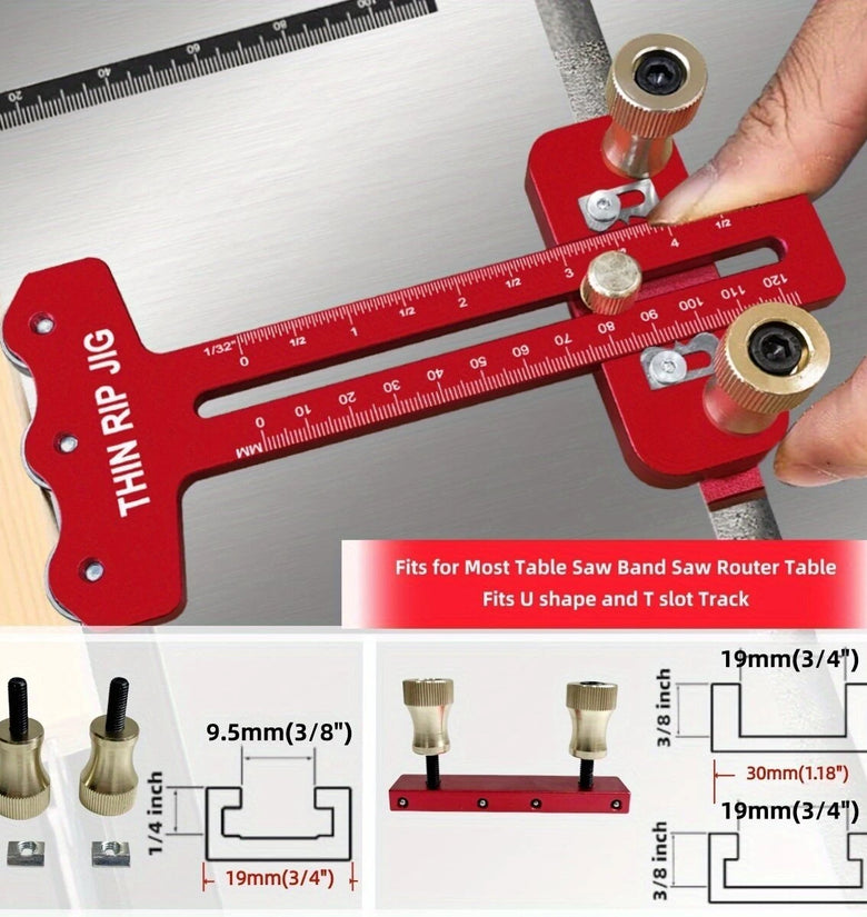 • Thin Table Saw Jig Adjustable Aluminum Guide Fits 3/8 x 3/4 U Slot 1/4 x 3/8 T Slot Precision Cutting Laser Engraved Scales 3 Pulley Design
