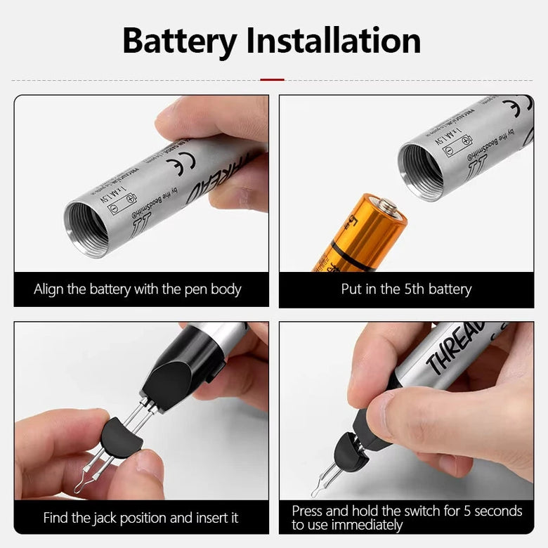 [Instructions for Use] Align the battery with the pen body, put in the 5th battery.Insert the replacement tips in thread burner, then press and hold the switch for 5 seconds to use immediately.When using, please press the button to keep the heating state. Release the button, the heating can be stopped.