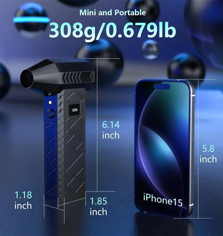 Weighing just 309g, this portable air blower is easy to carry and store. Its sleek design ensures ease of handling during any cleaning task, both indoors and outdoors.