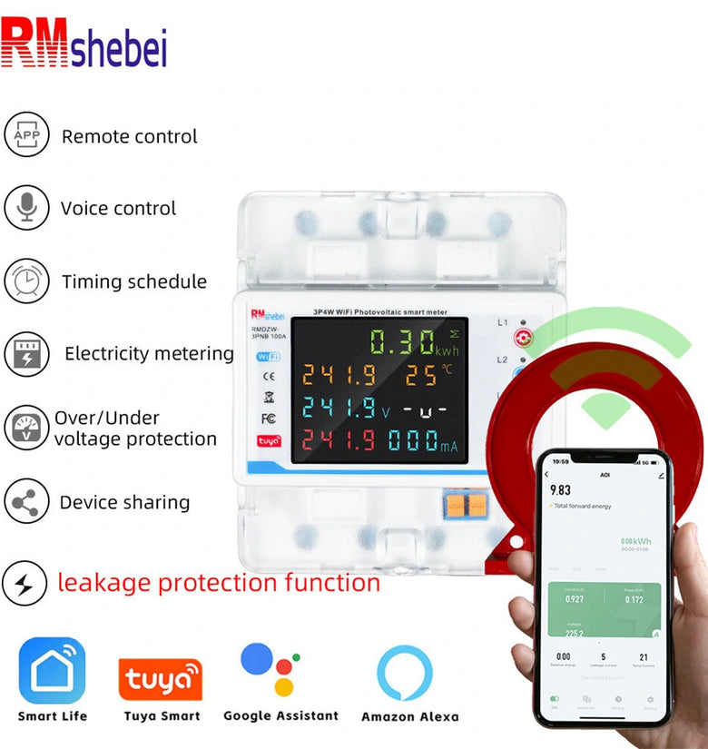 • Tuya WiFi Intelligent Circuit Breaker Automatic Reclosure Protector 3P4W Power Meter Three Phase Reclosure Switch with Multiple Protections Timing Schedule Electricity Metering Functions