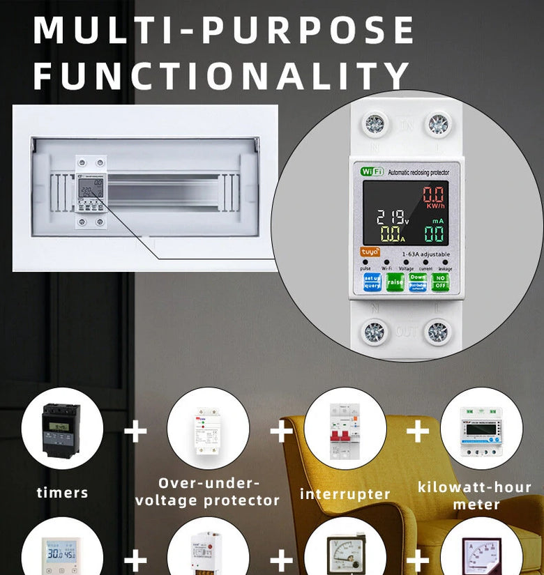 • Tuya WiFi Intelligent Circuit Breaker with LCD Display App Control, Four Timing Modes Comprehensive Protection System Durable Flame-Retardant Construction - Home Automation Energy Monitor Smart Device