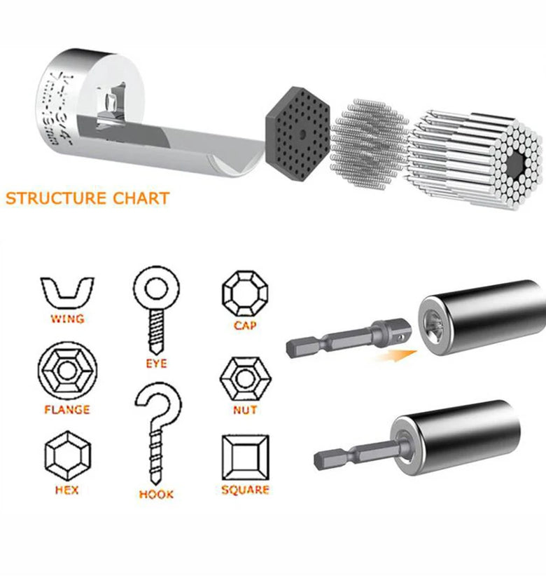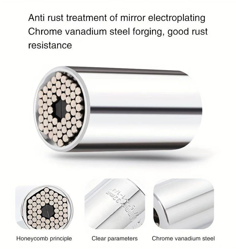 Good quality and durable for everyday use.Quick and easy Disassembly and assembly of all kinds of screws, hooks, lag screws, bolt heads, etc. Self-adjusts to fit thousands of fasteners.The product is compact and easy to carry.It can be used in automotive, home service, manufacturing, construction and other industries.Removable screws, rotating hooks, flat head screw disassembly. Removing non-standard screws and removing broken faucets, tightening handles.Specification:
