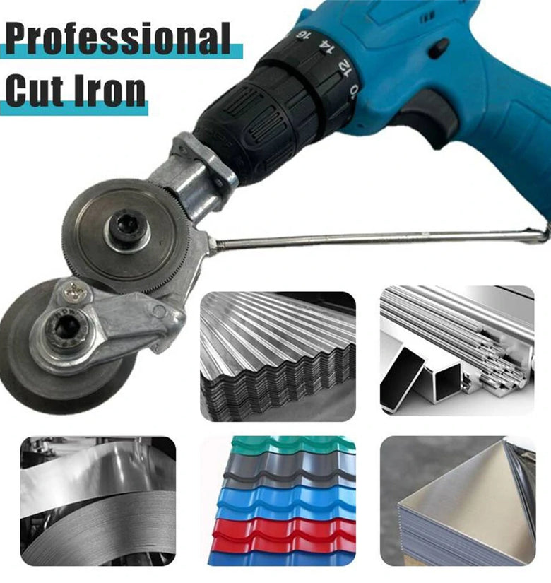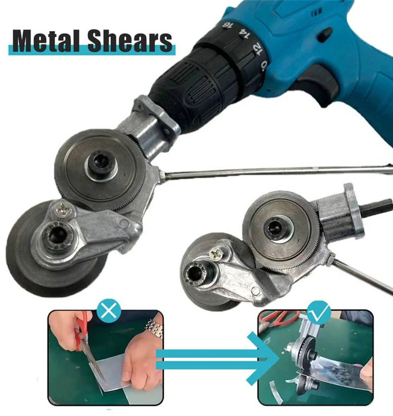 • Universal Electric Drill Plate Cutter Set Robust Metal Shear Attachment for Iron Steel Copper Aluminum Sheets up to 1.5mm Essential DIY Tool for Sheet Metal Cutting Tasks