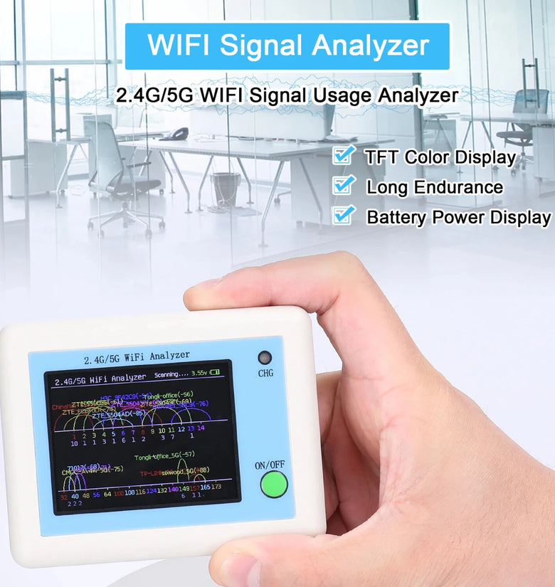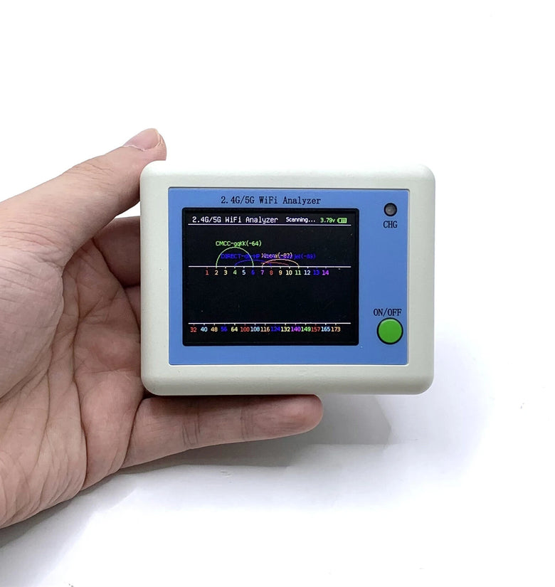 2.4inch TFT color display, supports displaying the wifi signal of all frequencies in the 2.4G band, and the number of wifi occupied by the same frequency point. And it will automatic refresh.
