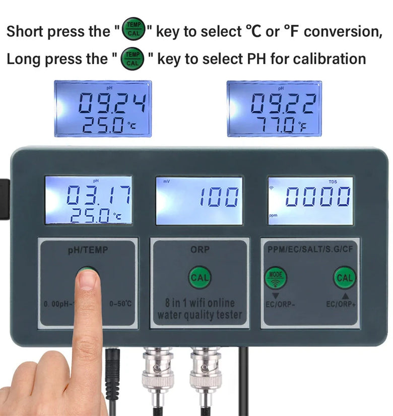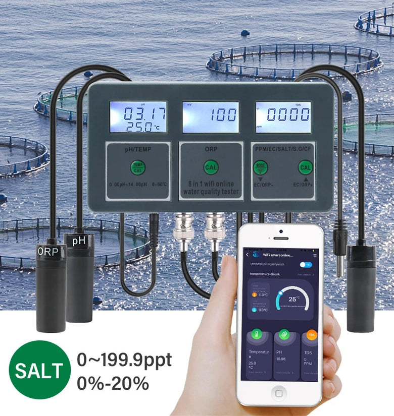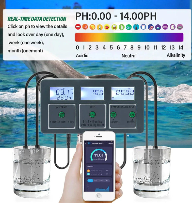 WiFi Tuya Smart Water Quality Tester PH ORP TDS EC SALT S.G TEMP CF Monitor Controller Aquarium Water Quality Tester Data Logger