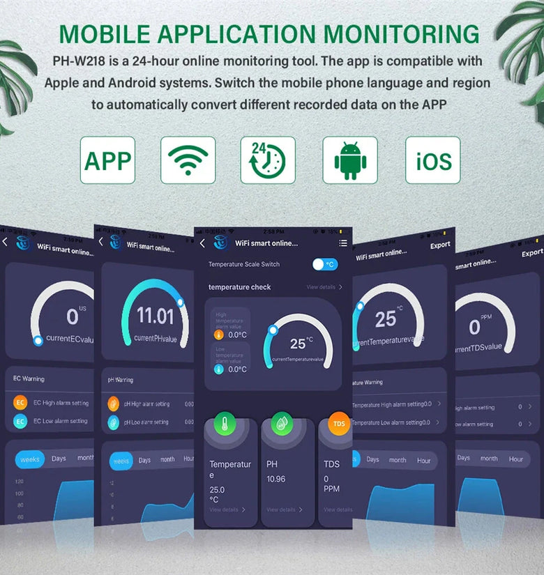3. Intelligent Alerts: Receive instant notifications for abnormal high and low data. Stay informed about your water quality, ensuring optimal conditions for your aquarium, pool, or spa.
