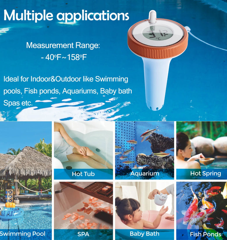 5. Wide Application: Suitable for a variety of environments such as family pools, spas, hot springs, baby baths, hot tubs, aquariums, and fish ponds. Simply place the thermometer in the water and get reliable readings within minutes. Remember to securely tighten the product to prevent water ingress.