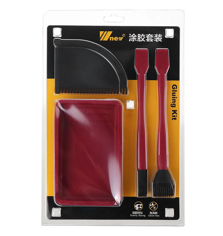 1Pc Wide Brush and Thin Blade 1Pc Narrow Brush and Thin Blade 1Pc Flat Scraper 1Pc Glue Tray |