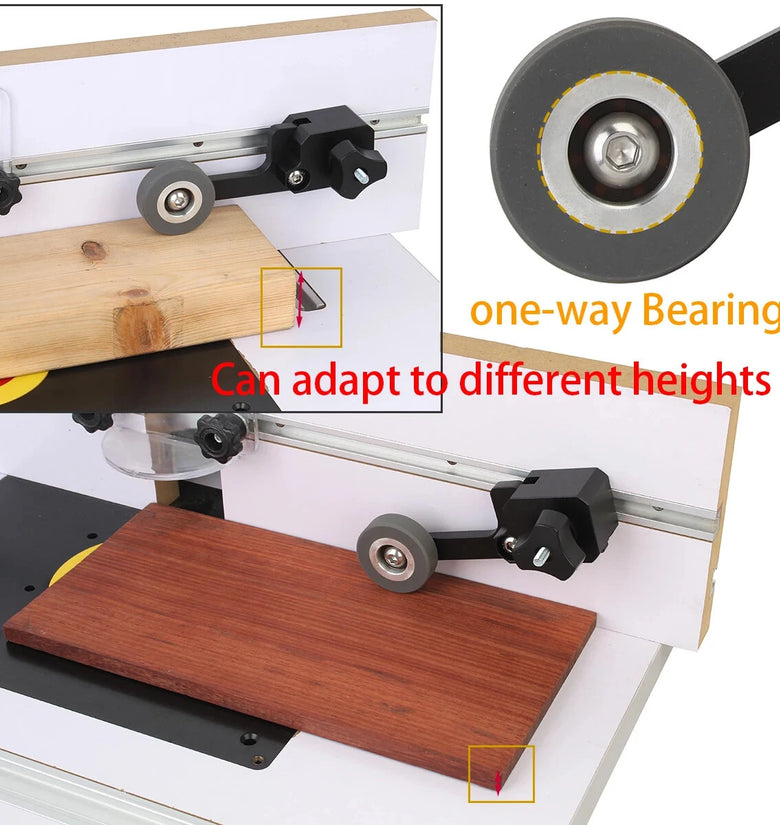 • Woodworking Multi-purpose Feather Loc Board Saw Table Pressing Feeder Guider One Way Bearing Roller Feeder Safety Pushing Tools