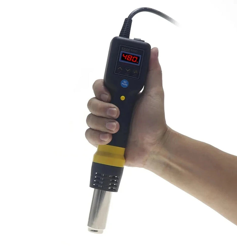 1. Versatile Use: Perfect for IC chip removal, welding, and mobile phone maintenance, this portable small Heat Gun is designed to handle a range of intricate tasks.2. Adjustable Temperature: With a temperature range from 100℃ to 480℃, the device allows detailed control, ensuring the device can cater to a wide assortment of requirements.3. Intelligent Shut-off: The Heat Gun features intelligent cold air shutdown, protecting the device from damage and offering a safer work environment.4. Large Airflow: Capable of a maximum 120L/min airflow, this heat gun guarantees effective and quick heat distribution.5. Digital Display: Equipped with a microcomputer digital display, this heat gun ensures precise control and easy monitoring of operation status.Specifications:- Output Power: Wind gun 480W, Welding table 90W- Input Voltage: AC 220V 50/60Hz, 110V 60Hz- Temperature Range: 100℃〜480℃- Airflow: 120L/min(MAX)- Storage Humidity: 35%~45%- Display: Microcomputer Digital Display Package Included: