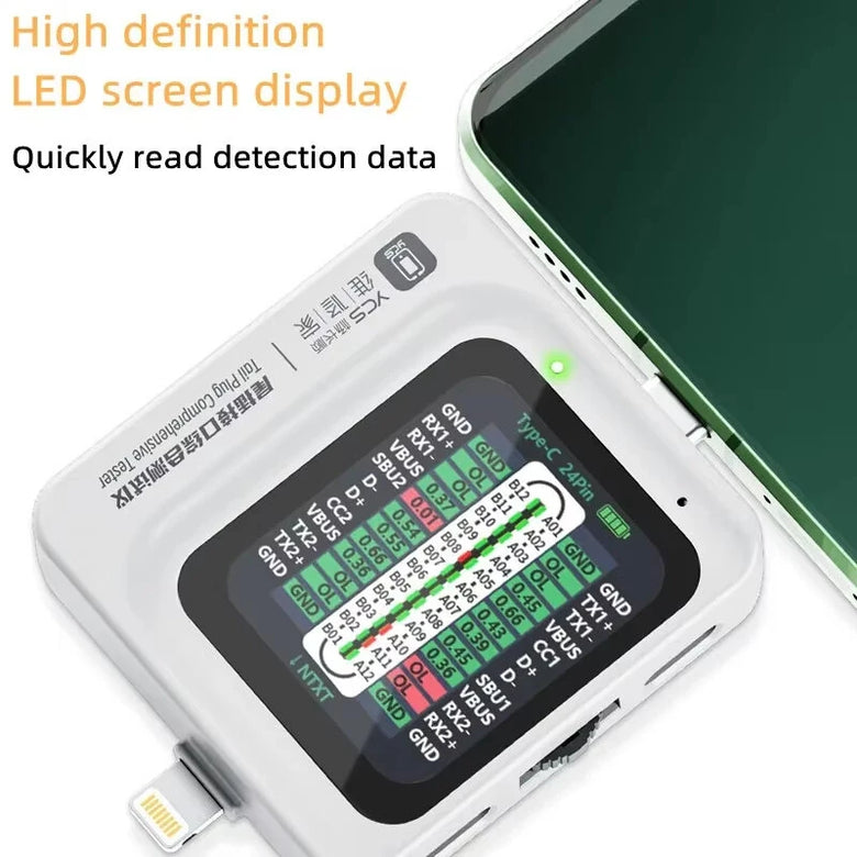 4. 30V-5A Easy to master,The product starts testing the current, voltage, D+, D-, CC1, CC2 lines when connected to the device to be tested.