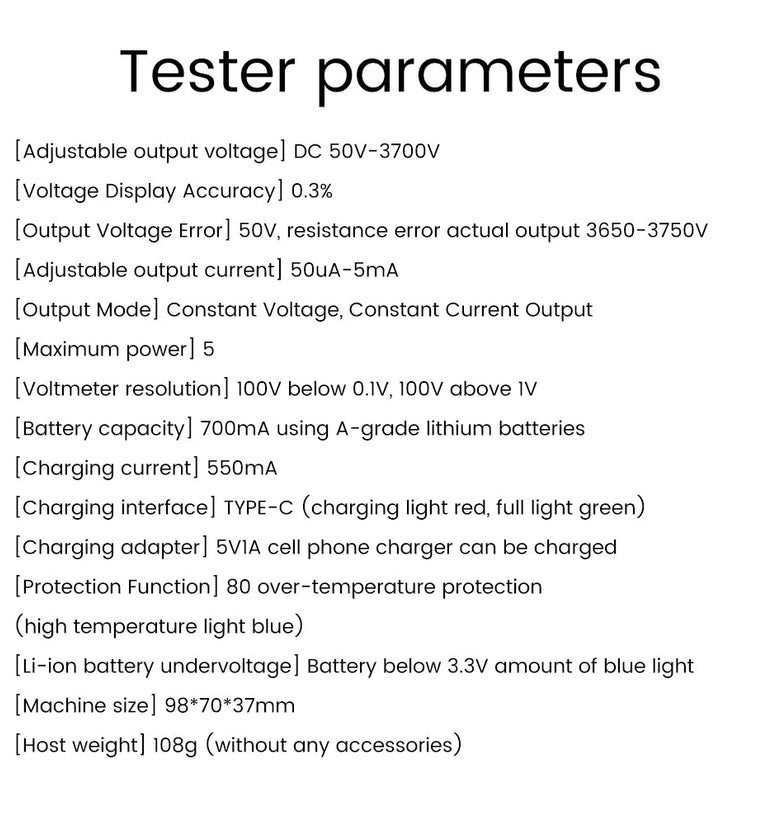 - Voltmeter resolution: 0.1V (below 100V), 1V (above 100V)