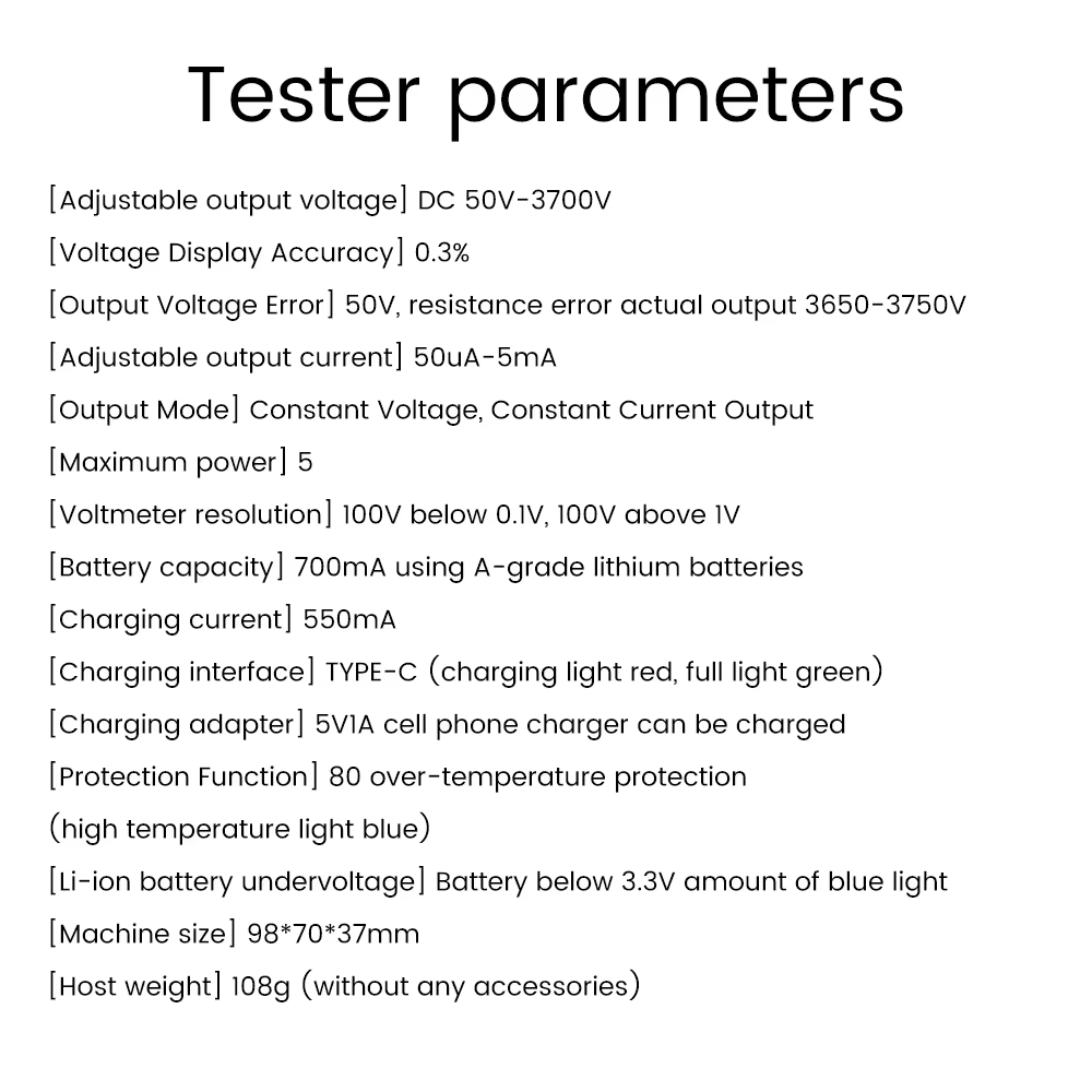 -4. Precision Voltage Adjustment: Adjustable output voltage ranging from DC 50V to 3700V with a voltage display accuracy of 0.3% and an error margin of ±50V.