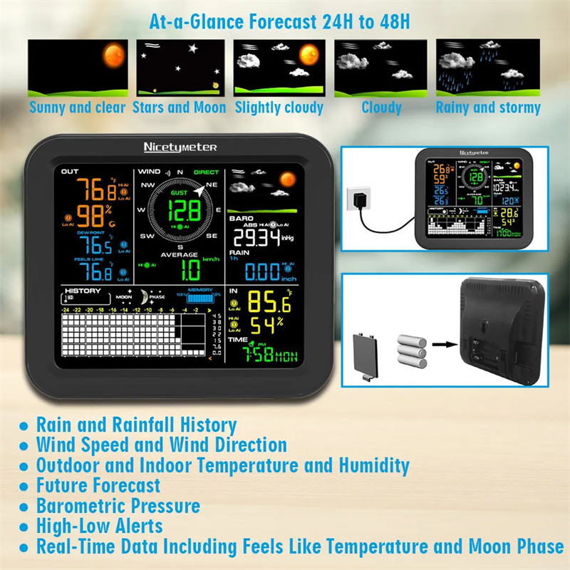 4. Historical Data Management: Internal memory for storing and exporting detailed weather history.