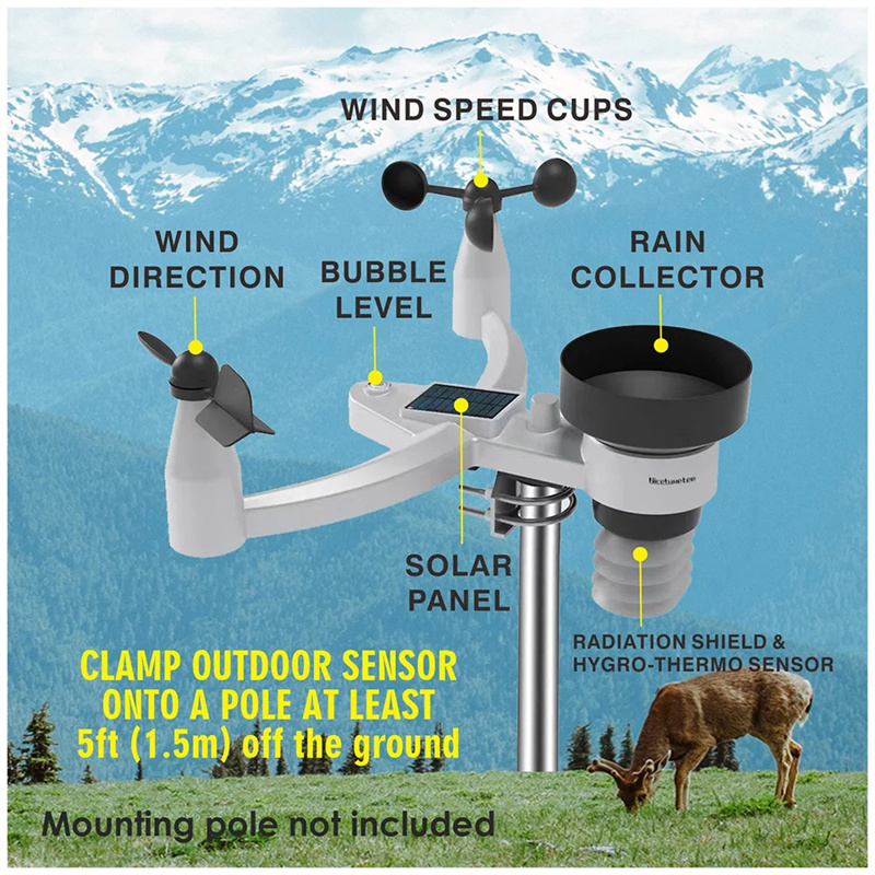 2. Comprehensive Data Collection: Tracks rainfall, wind speed and direction, indoor and outdoor temperature, and humidity.