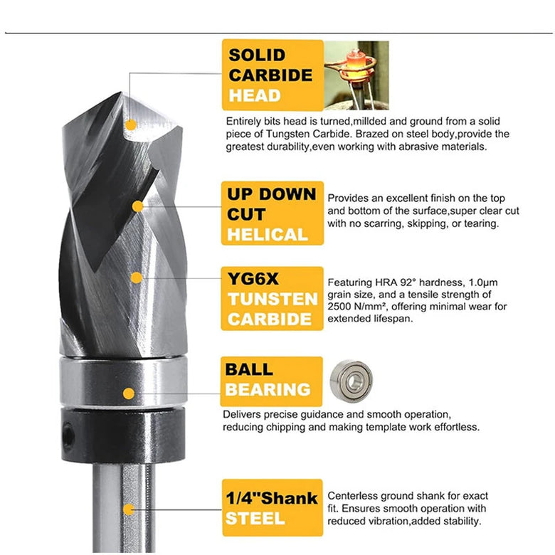 Equipped with a top bearing for smooth flush trimming and edge detailing, enhancing user control and precision.