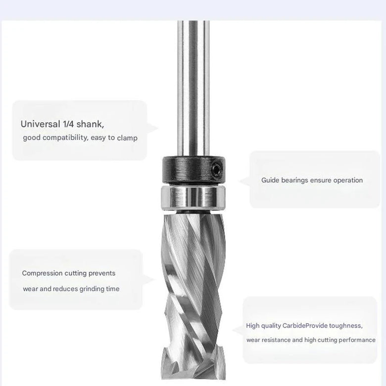 2. Efficient Top Bearing Design: The top bearing enables precise flush trimming, which reduces time and effort in achieving smooth, even edges on your workpieces.
