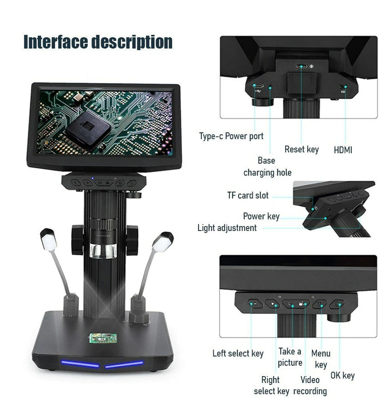 【10.1-inch IPS Screen Microscope】Equipped with a 10.1-inch IPS screen, this microscope offers a spacious viewing area for your convenience. With a resolution of 1024 * 600, it guarantees clear and detailed images, thereby enhancing your observational experience.