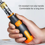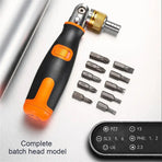 Multi-Functional: This 10-in-1 hidden batch head screwdriver set serves numerous repair and installation needs, making it an essential tool for any toolkit.Adjustable Angles: Its multi-angle feature allows for easy access to hard-to-reach areas, adding convenience and efficiency to your repair tasks.Quality Material: The screwdriver heads are made of carbide, ensuring longevity and dependable performance.Comfortable Grip: The outer material of the screwdriver is made of plastic, offering a comfortable grip and easy maneuverability.Hidden Batch Head: With its unique design, the batch head can be hidden when not in use, making storage and transportation easy.Specifications:Product Type: Multi-function Screwdriver SetComponents: 10 PiecesHead Style: Internal Hex, FlatMaterial: CarbideColor: BlackOuter Material: PlasticSurface Recommendation: Plastic, MetalAssembly Required: NoRecommended Use: Decoration, Repair, and InstallationPackage Included:1 x 10-in-1 Ratchet Screwdriver SetDetail Pictures: