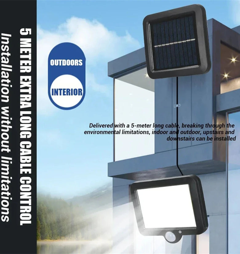 • 100/120/128COB Solar Lights Outdoor Split Wall Lamp 3 Modes Waterproof Motion Sensor Street Light for Home Garden Landscape